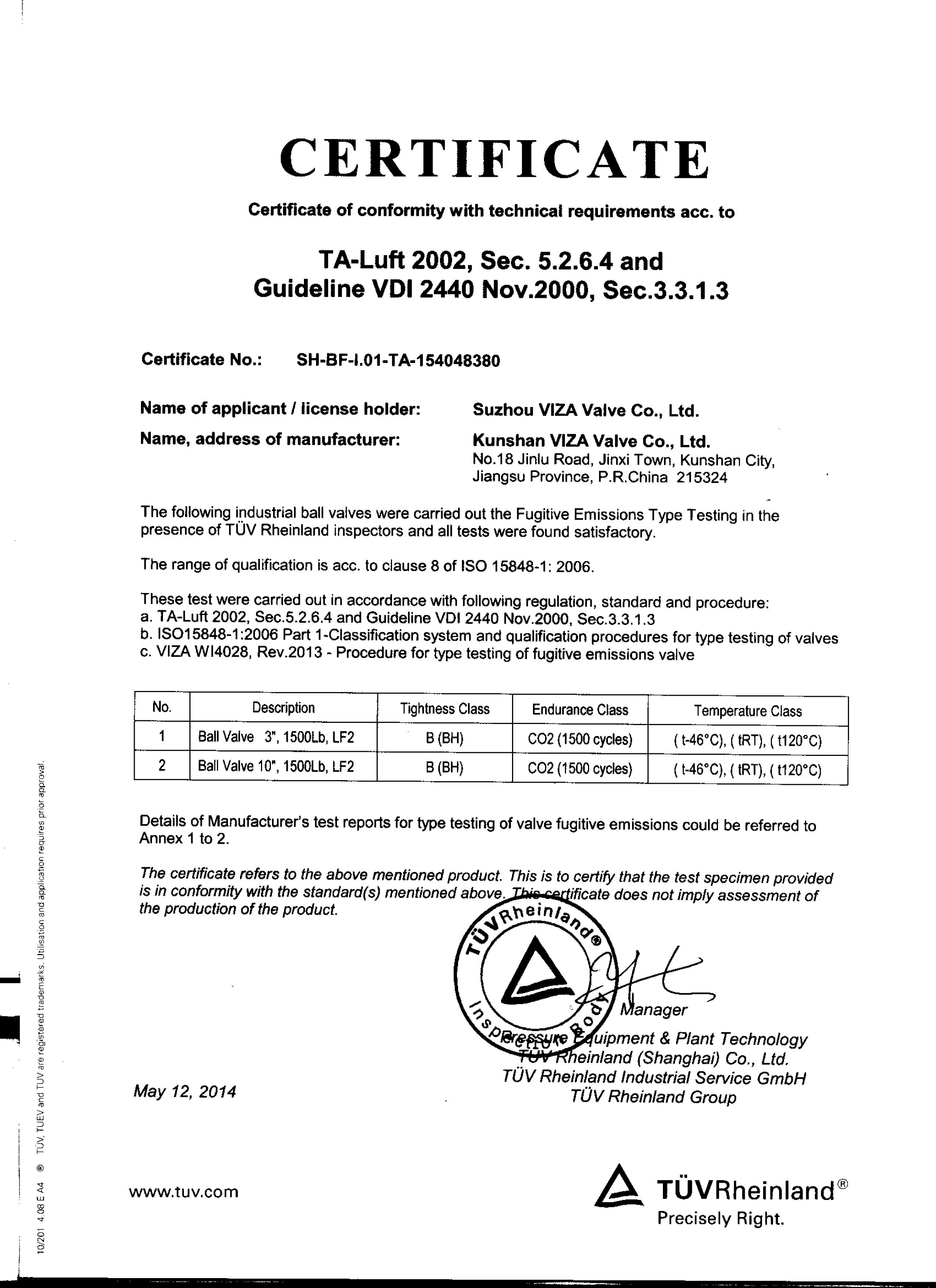 Ta Luft Certificate-BALL
